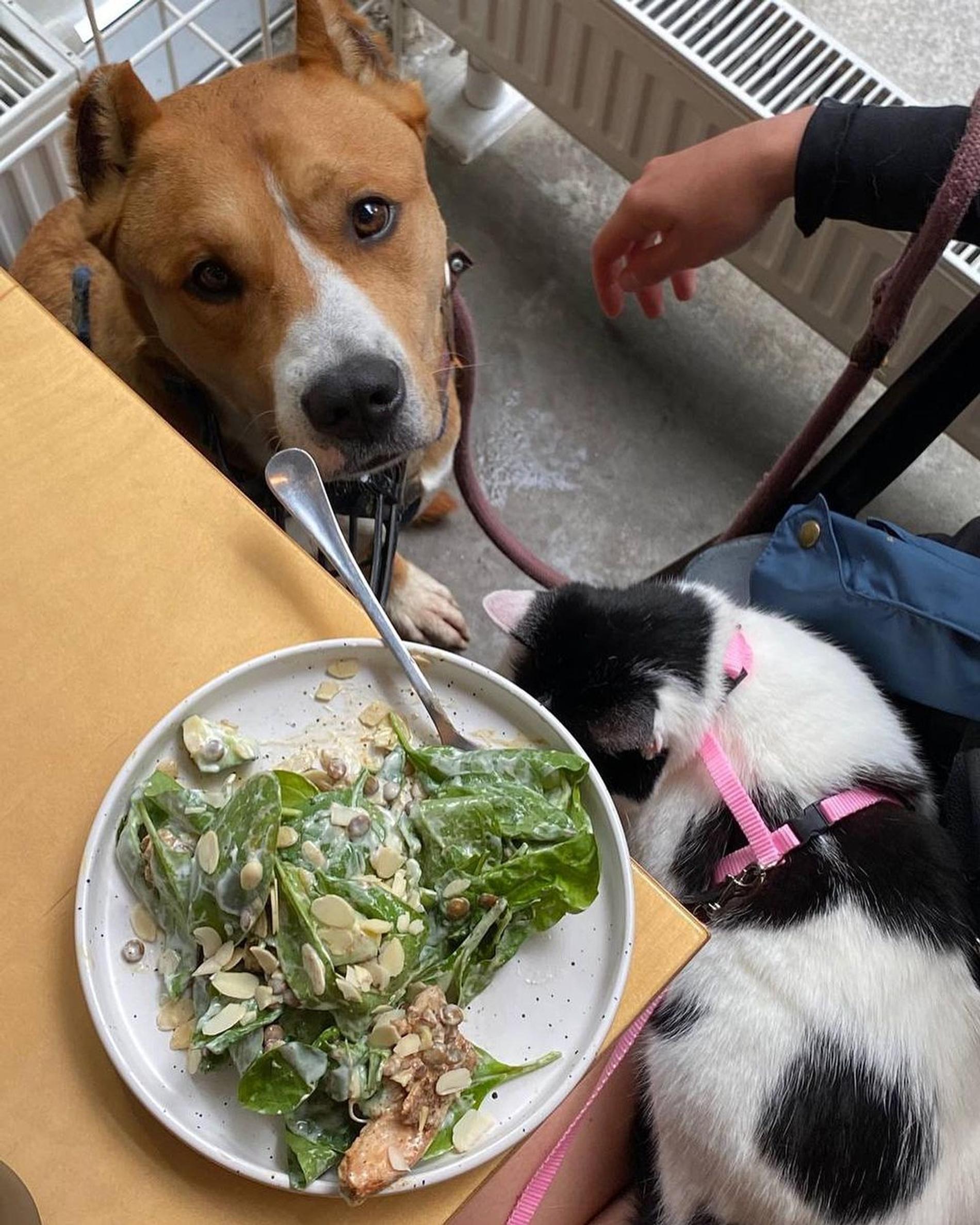 Кажется, это то самое место, куда приходят потусоваться и пообщаться не только люди, но и их собаки. Пока под столом суетливый пудель переглядывается с улыбчивым сиба-ину под тявканье йорка с бантиком на голове, их верные двуногие активно обсуждают киноновинки и фотовыставки под аккомпанемент ароматов от запеченного батата или картофельных ньокков.