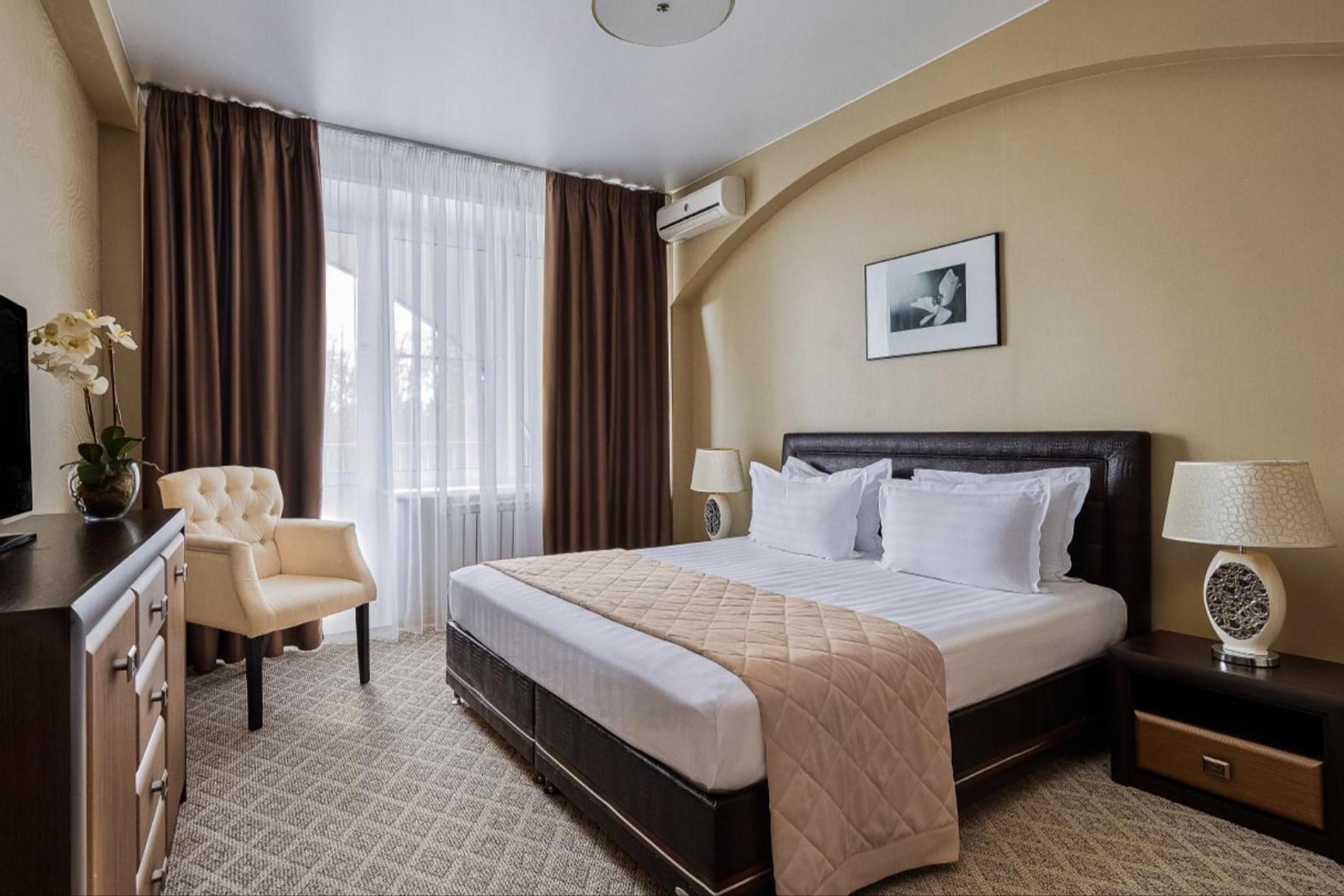 В загородном парк-отеле можно выбрать один из оформленных в классическом стиле номеров разной категории или поселиться в коттедже. Последний вариант понравится любителям экостилистики и кантри-атмосферы. Из развлечений — возможность покататься на лошадях.