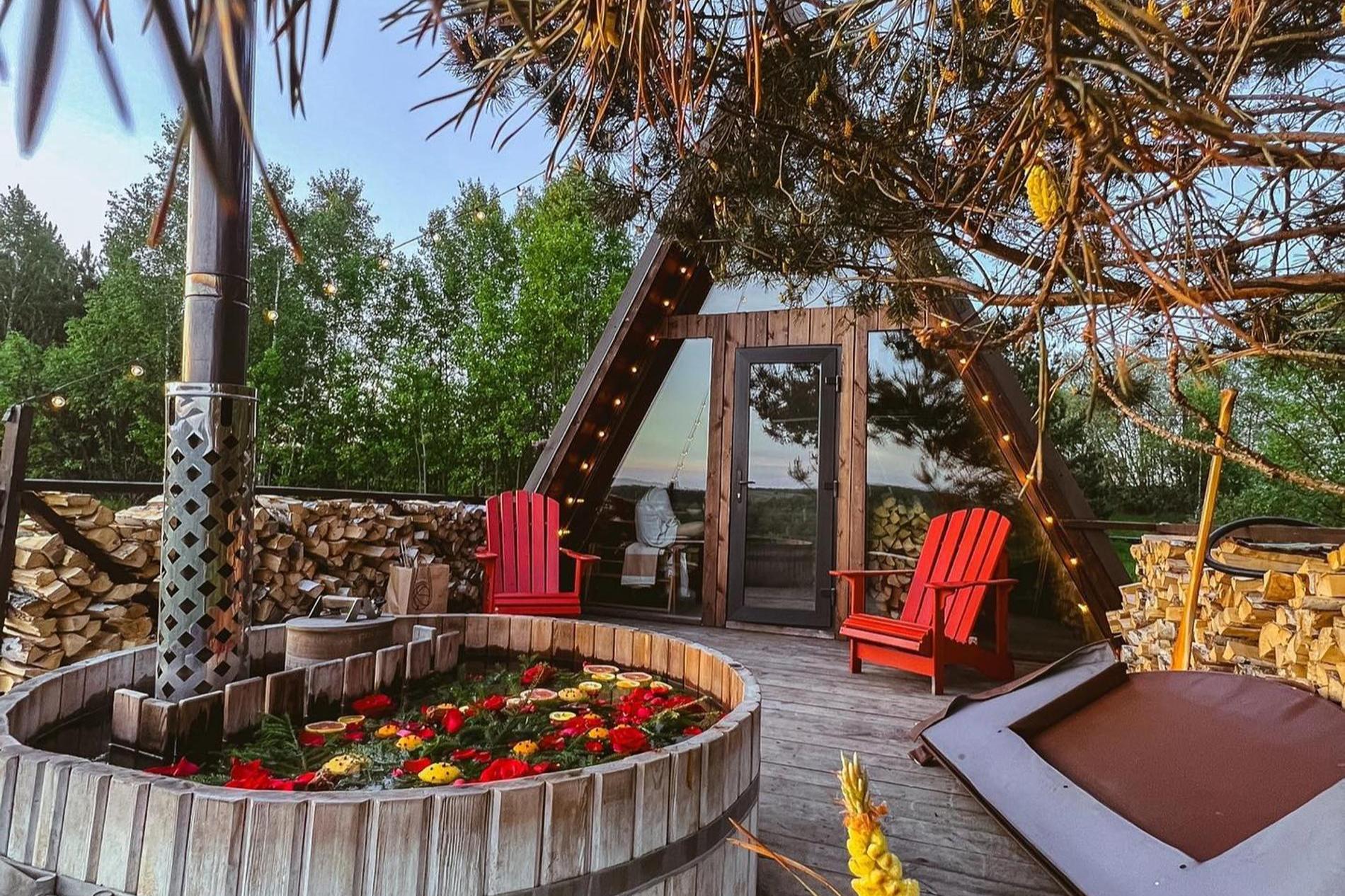 В глэмпинге 15 шалле, на террасе каждого установлена горячая купель «Фурако», которая непременно растапливается к приезду гостей. А вокруг лес, где можно встретить зайцев, лисиц, бобров, косуль, аистов и уток. Как бонус — грибы, дикая клубника, яблоки, ежевика и травы для чая, которые можно собрать во время прогулки.