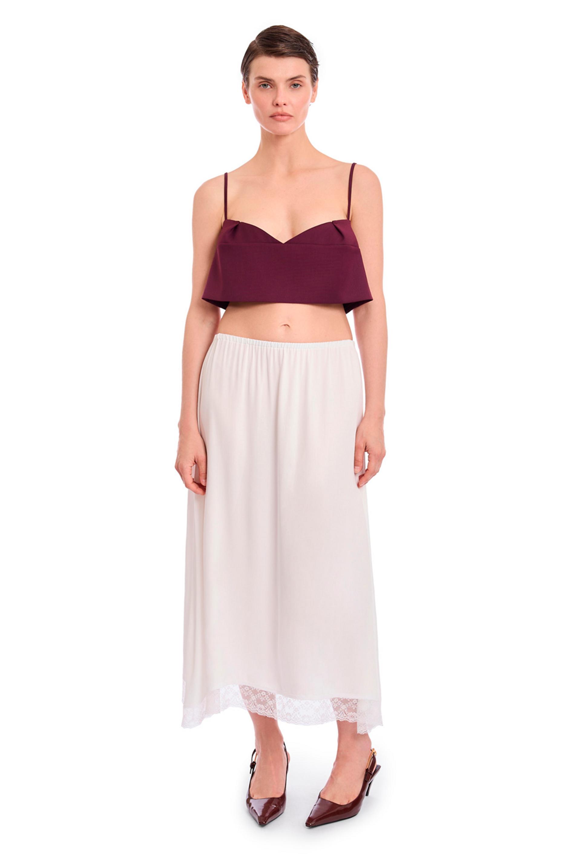 Вспоминаем топы с лямкой на одно плечо, которые носили в нулевые. У вашей модели две лямки на одно плечо? Еще лучше! Кстати, асимметрия в этом сезоне коснулась и низа изделий: одни идут с диагональным скосом, другие обзавелись асимметричной драпировкой, третьи — воланами разной длины.