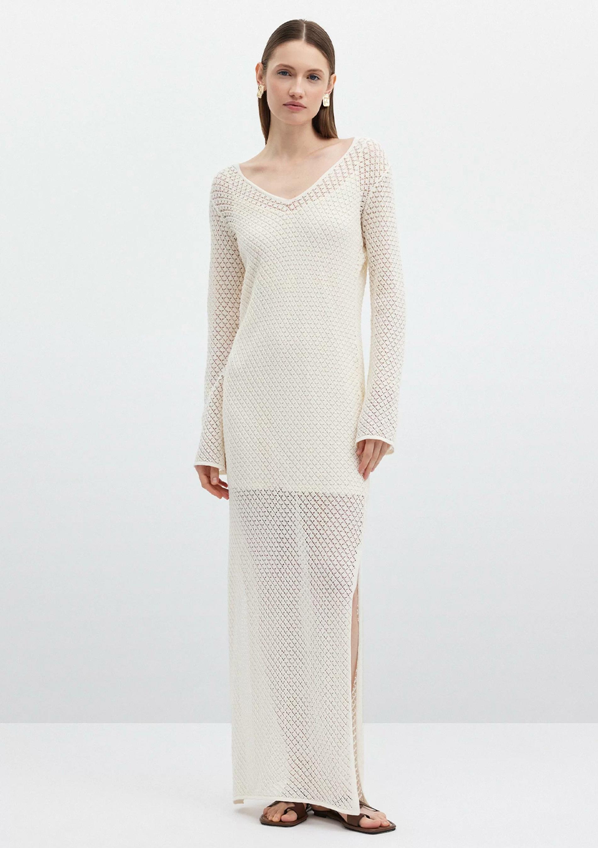Вязаное белое платье в пол наподобие тех, что раньше мы носили только на пляж, — фаворит сезона. Полупрозрачность никого уже не пугает: в городе нижним слоем надеваем либо лаконичную комбинацию (короткую и не очень), либо топ с шортами-велосипедками.