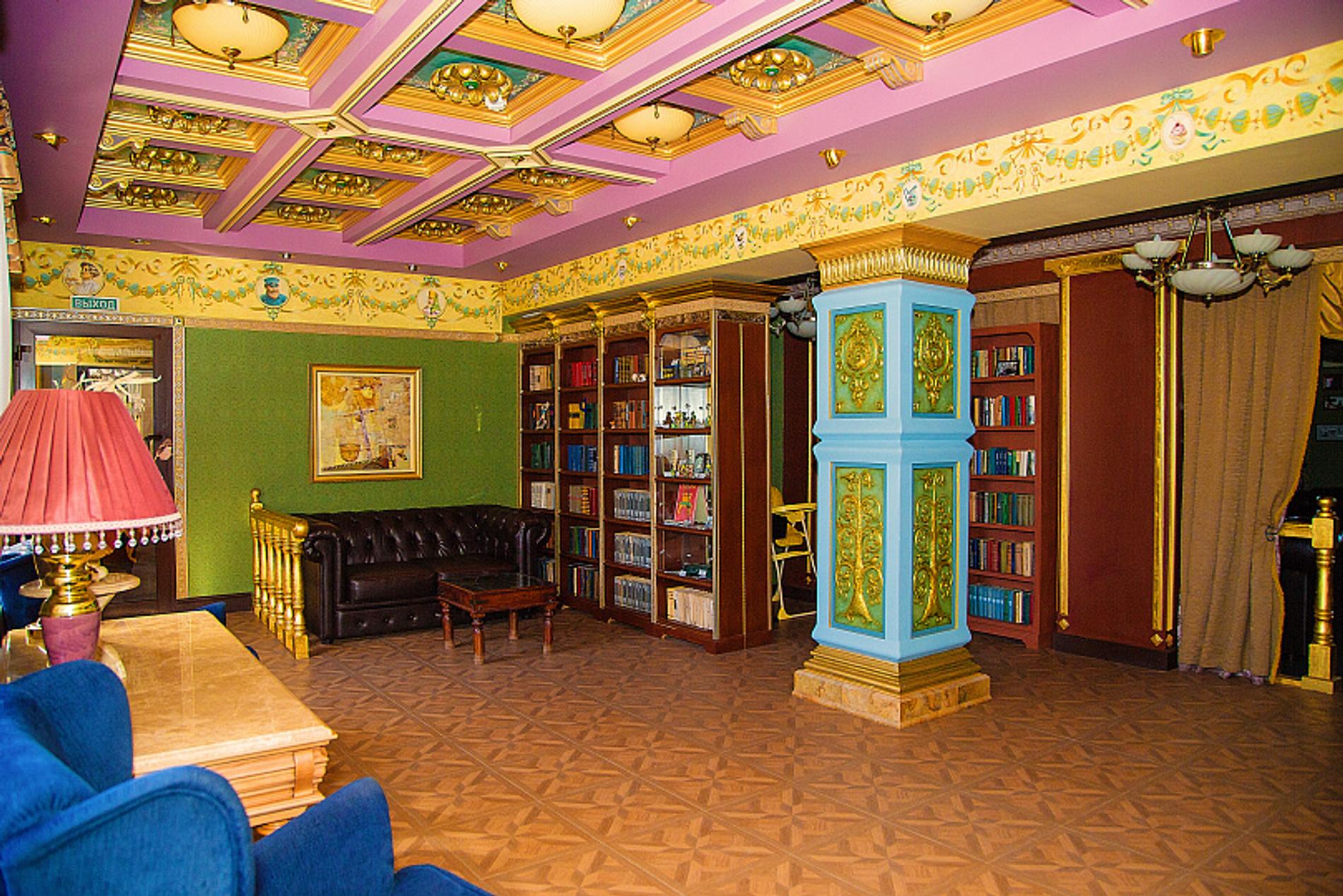 Расписные потолки с лепниной как отголоски купеческого прошлого города. Царящее вокруг разноцветье сложно назвать эклектикой, тем не менее ощущение уюта здесь присутствует. В номерах более лаконичный декор, который отсылает местами к советской эпохе.