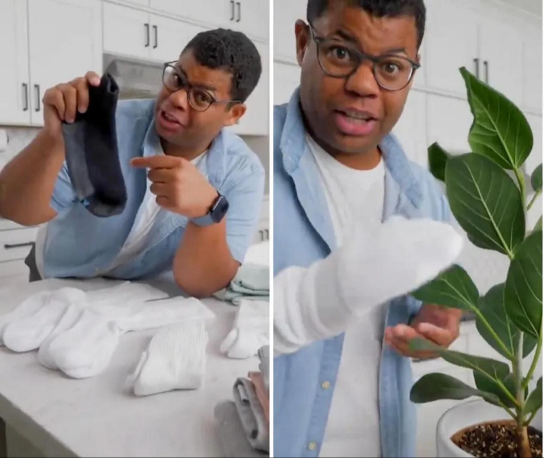 Не спешите избавляться от старых носков — оказывается, они незаменимы во время уборки. Тиктокер под ником @problemsolved регулярно делится полезными лайфхаками для дома, но этот кажется особенно остроумным. Если у вас собралась чулочно-носочная «коллекция», которую жалко отправить в утиль и неловко использовать по назначению, попробуйте использовать старые носки в качестве хлопковой «варежки» для ухода за комнатными растениями.