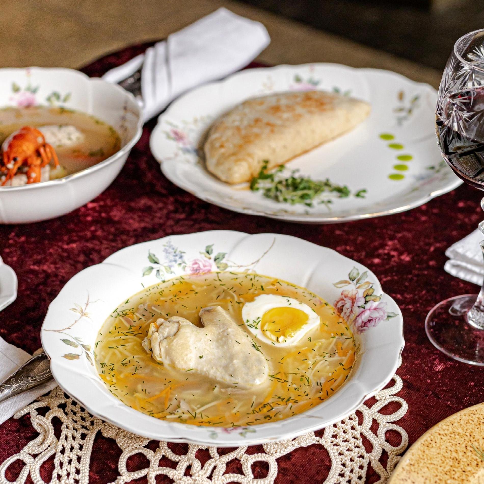 Погружаемся в дореволюционную эпоху: в ресторане-музее воссозданы интерьеры 130-летней давности. Здесь и винтажный буфет, купленный на аукционе в Европе, и патефон, который все еще способен воспроизводить музыку, и старый телефон, чей звук слышен в конце улицы. Блюда готовятся по старинным рецептам. Вот вам суп «Калья» с лафитником огуречного рассола, а вот «свиное отбивное». Извольте искушать.