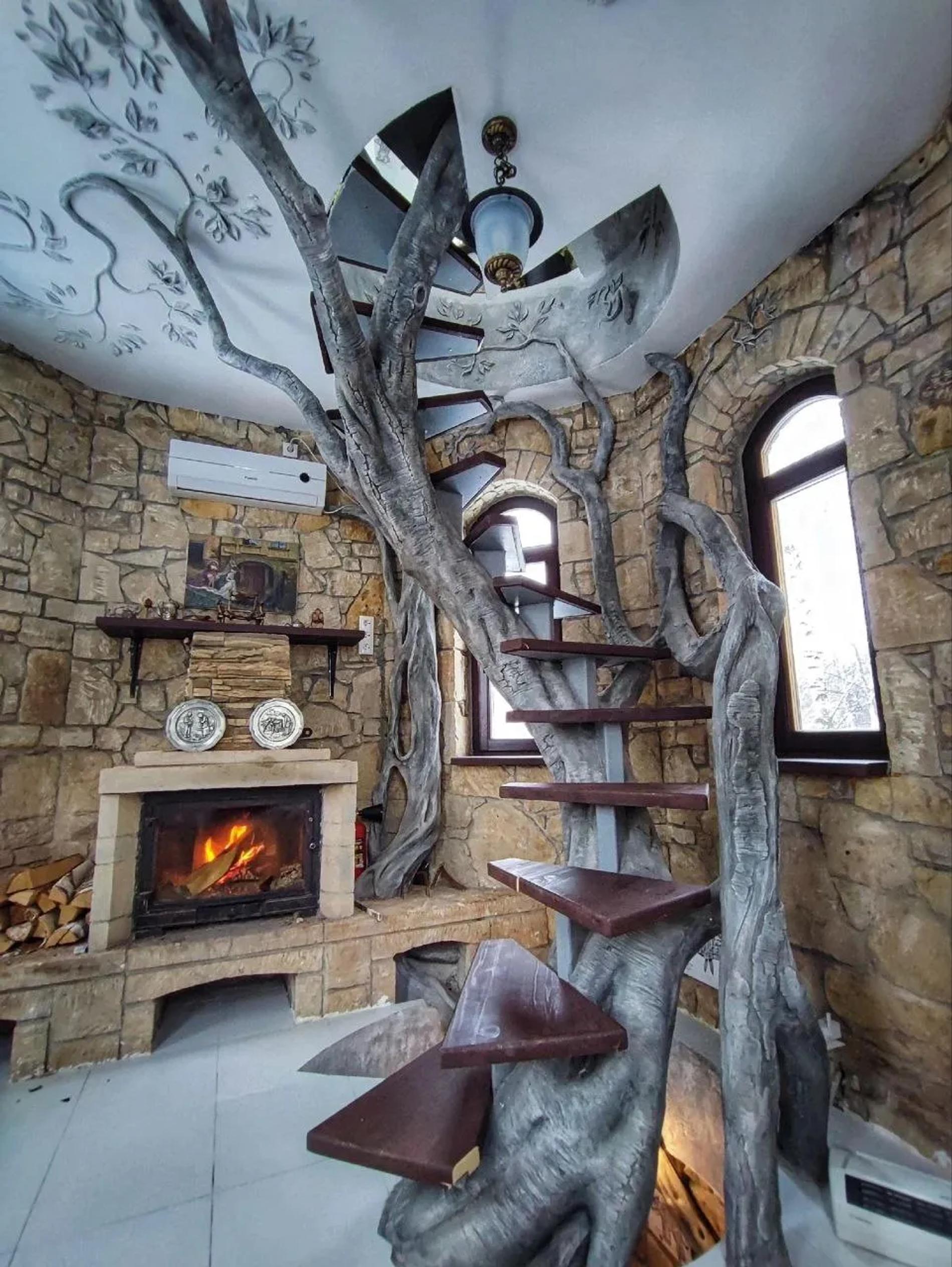 Царицыно есть не только в первой столице — в Москве, но и в третьей: в казанском районе возвышается средневековая башня — мини-отель с антуражной мебелью. Всего один трехэтажный номер. На верхний уровень ведет причудливая лестница в виде дерева. А еще там диван из корейского чемодана, 200-летнее зеркало и расписанный птицами кухонный гарнитур.