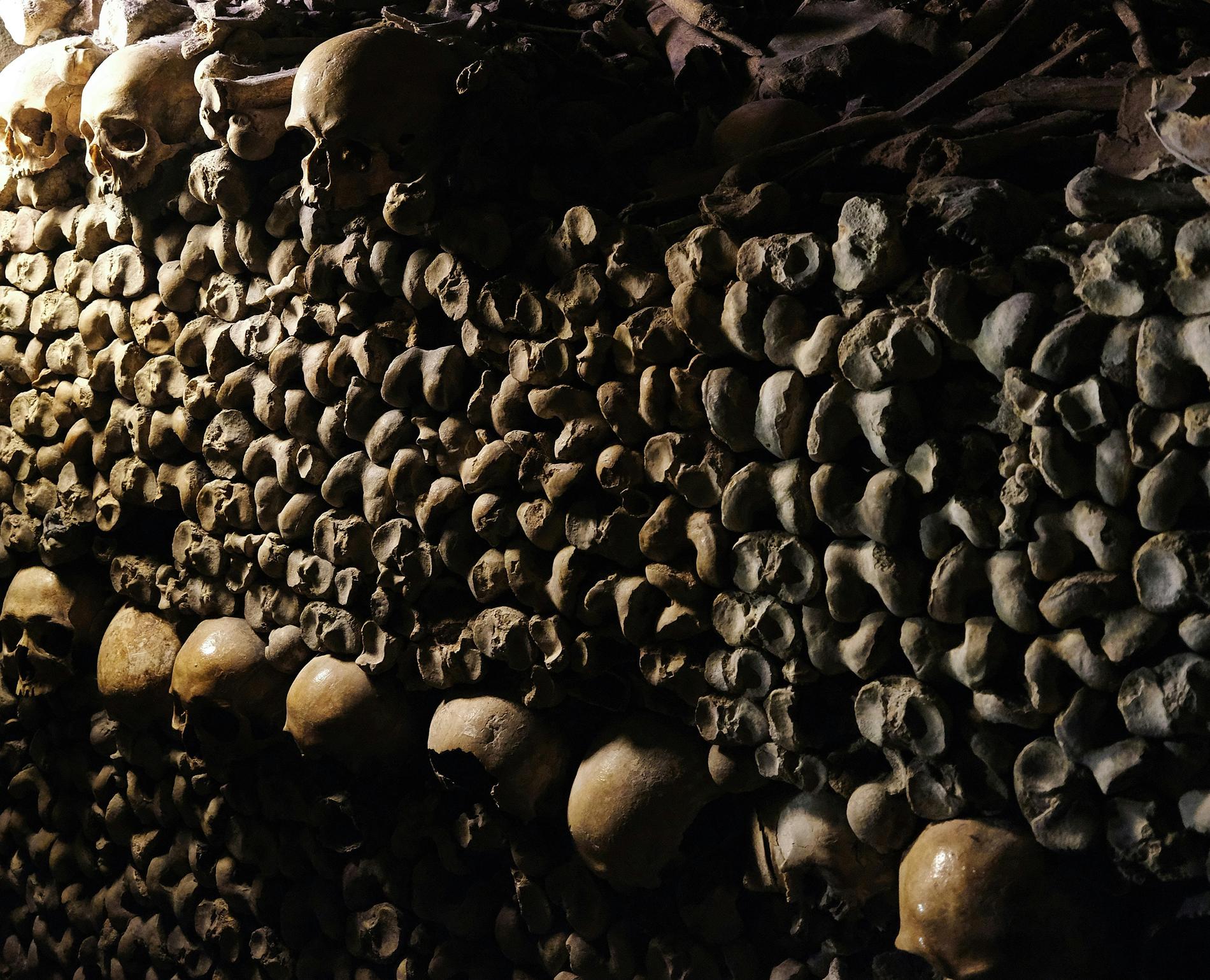 Древнеримские каменоломни, где много веков назад добывали известняк, со временем превратились в 300-километровый комплекс катакомб под Парижем. С XVIII века сюда стали переносить останки жителей, так как кладбища оказались переполненными. По некоторым данным, в катакомбе хранятся скелеты около 7 млн человек, в том числе Шарля Перро и Робеспьера. Для осмотра доступен участок в 1,5 км.