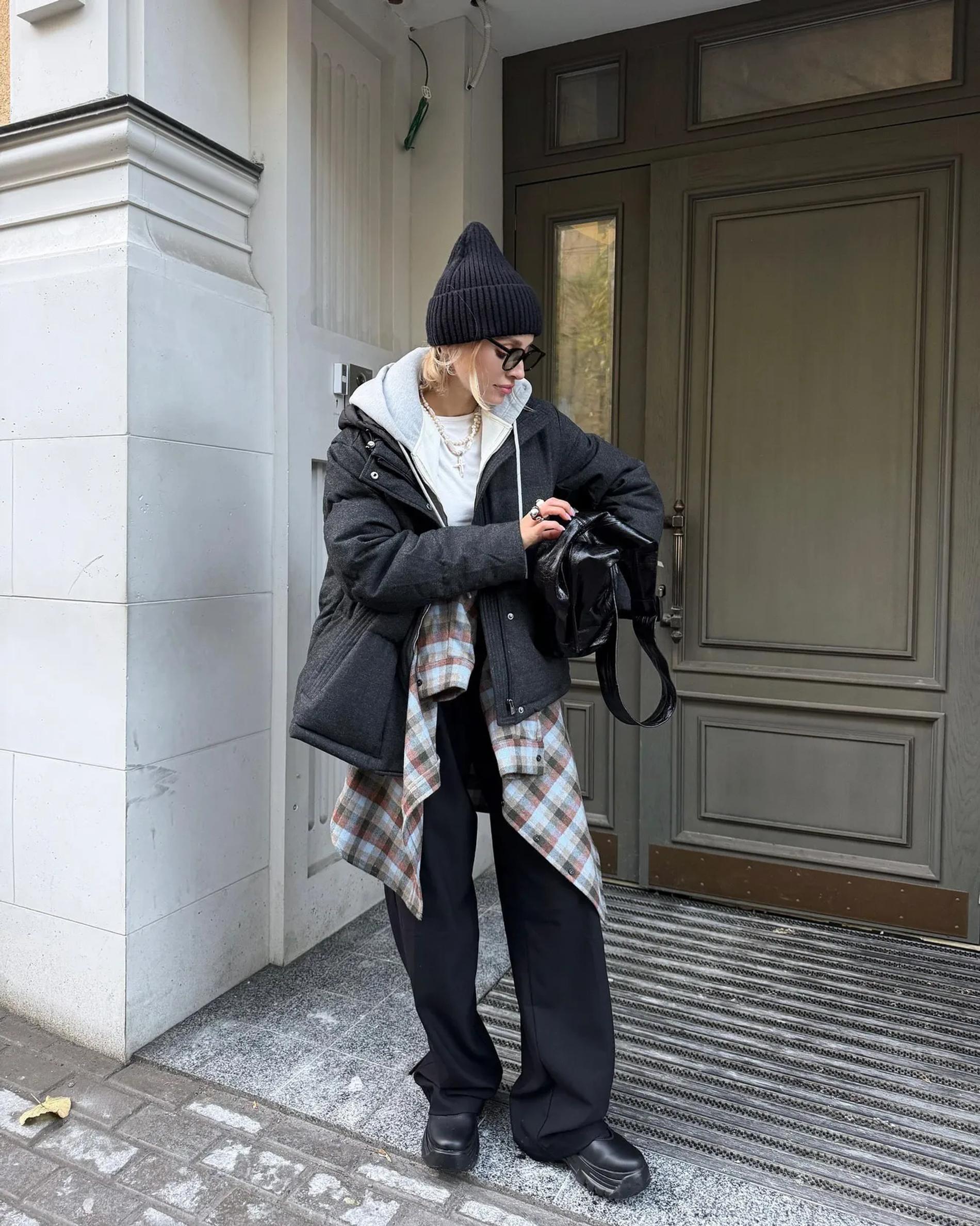 • Куртка — настало время утепляться. Инфлюенсеры рекомендуют присмотреться к стёганным вариантам, «рабочим» курткам (да, всё ещё с нами), прямому крою. Куртка не должна сковывать движения: дайте себе свободу.