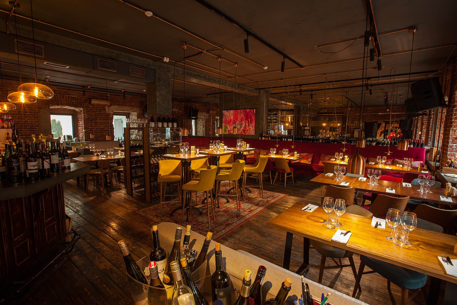 Еще один проект родом из Северной столицы. Шебутной, развеселый, с модной публикой, зачастую понимающей толк в вине. Разливают много динамики и натуралки. Цены ни на вино, ни на еду демократичностью не отличаются, но за приятную атмосферу не жалко.