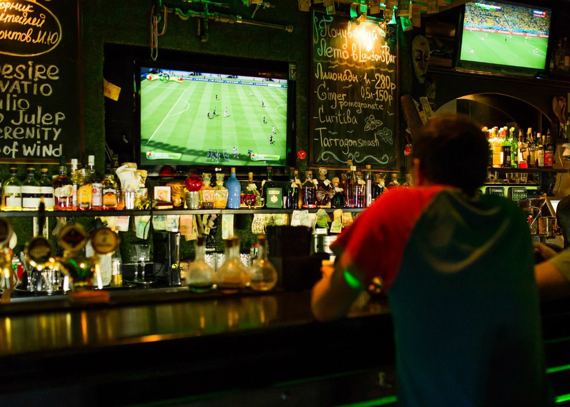 В баре, интерьер которого похож на католический храм, за победу любимой команды предлагают… молиться! На все главные матчи — четверть-, полуфинал и финал — столы из центрального зала вынесут, а их место займут церковные лавки в ряд по направлению больших экранов и проекторов. Под пинту пива и локти предусмотрены специальные подставки.