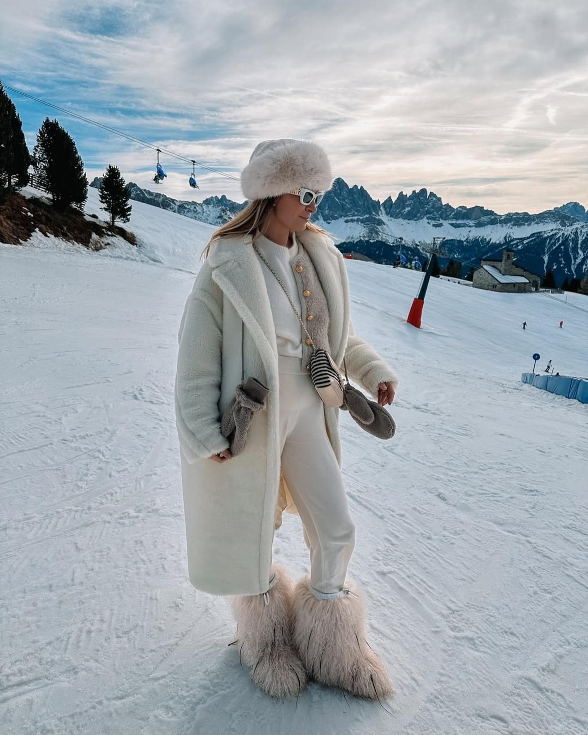 Романтический уикэнд за городом зимой предполагает определенную форму одежды — должно быть максимально комфортно и тепло. А как же эстетика? Фотографии у камина или на прогулке непременно должны быть красивыми. Например, соберите мини-капсулу в одной цветовой гамме. Угги или мунбуты, леггинсы или спортивные брюки, уютный свитер в стиле apres-ski или объемное худи, шуба или дубленка… Шапка, шарф и варежки могут быть на контрасте.