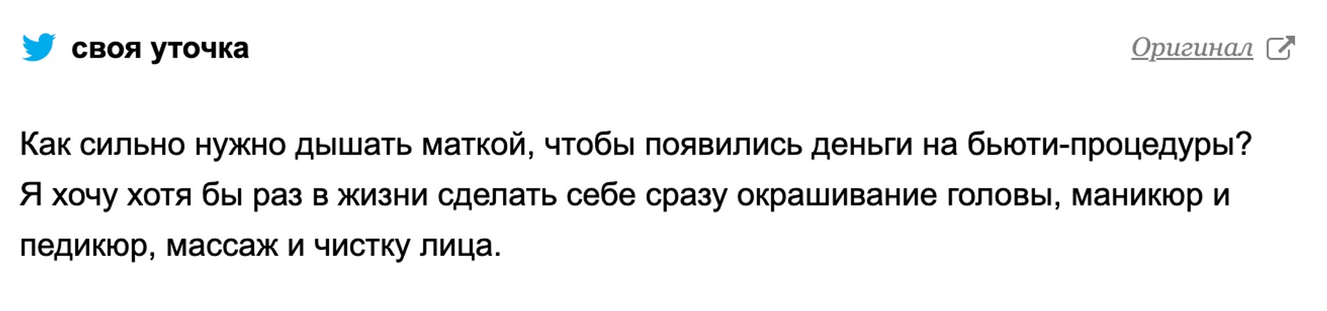 Когда «дыхание маткой» захватило инфополе, на него тут же обратили внимание в социальных сетях. Техника быстро стала мемом. На YouTube под видео с практикой шутники упражняются в юморе: «Как быть, если матка обиделась и не разговаривает?». «Урок хороший, но есть один вопрос. Что делать, если у меня нет матки?» — спрашивает некий Никита.