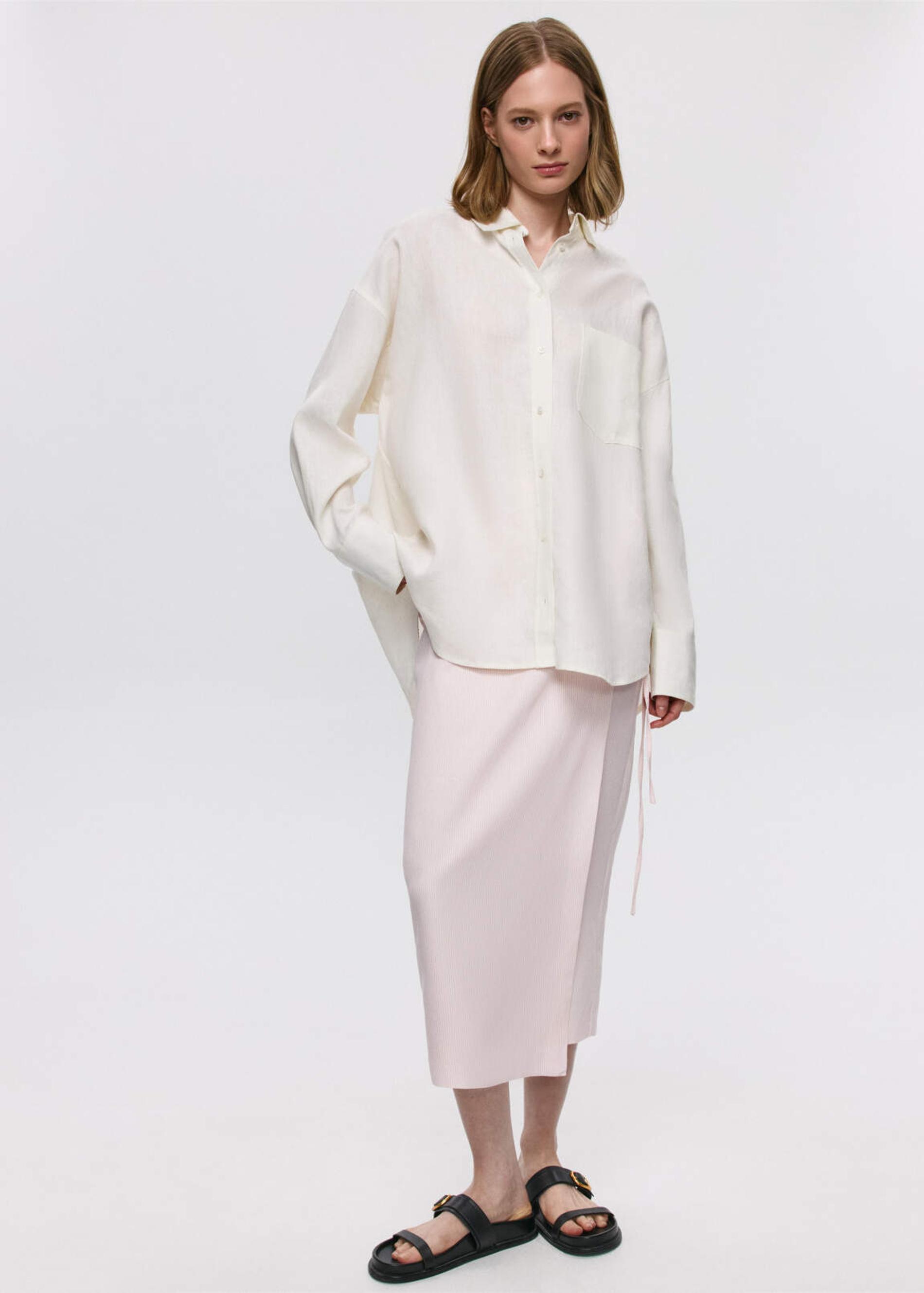 В основном речь идёт о юбках в длине миди, в которые полы накладываются друг на друга. Вещь из плотной костюмной ткани отвечает требованиям офискора и легко комбинируется с водолазкой либо поло, сверху — жакет. Шелковистые летящие ткани — это история про лето: такие юбки на одной волне с шёлковыми топами или корсетами. Увеличиваем степень лёгкости за счёт босоножек с тонкими ремешками.