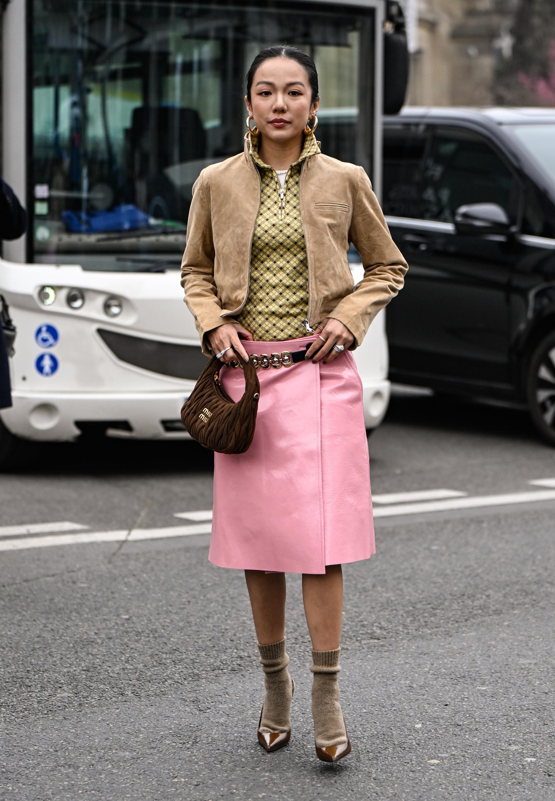 Современные тенденции таковы, что границы дозволенного оказались размыты, и формула «сочетание несочетаемого» стала во главу угла. Так, строгая юбка-карандаш отлично себя чувствует в компании с расслабленным и немного озорным бомбером. А женственный и немного романтичный А-силуэт прекрасно ладит с дерзкой косухой, которая, кстати, умудряется находить общий язык с любым поясным изделием. Впрочем, ещё более лояльным настроем отличается тренч, сколько бы мемов про него ни придумывали. И довольно свежее решение — укороченный тренч, который не скроет красоту вашей юбки.