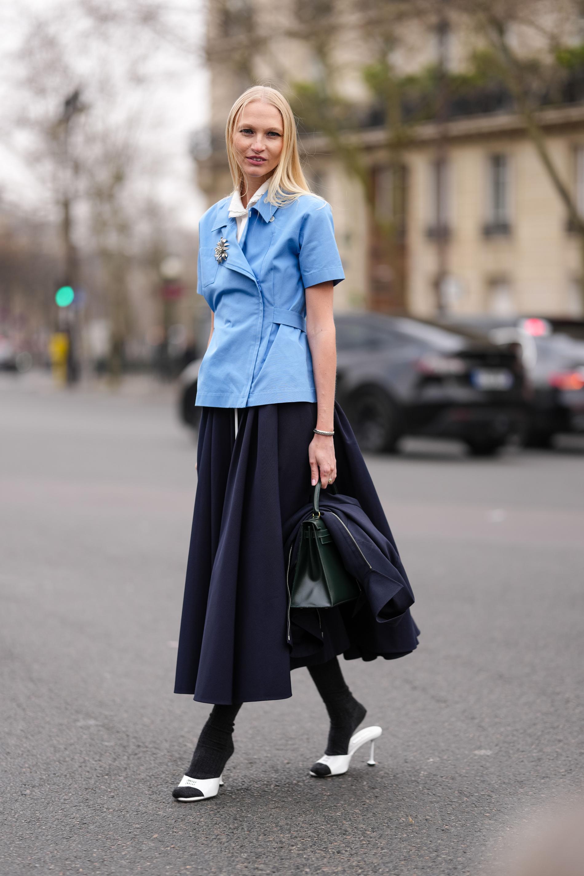 Бесспорно, весной юбки забирают пальму первенства у брюк. Модные юбки 2025 легко подстраиваются под капризную, не устоявшуюся после зимы погоду. Комбинируйте их с разноцветными колготками, а также с лосинами. И не стесняйтесь надевать юбку поверх брюк и джинсов (да, всё ещё можно). А длинные гольфы и носки станут той самой изюминкой вашего образа.