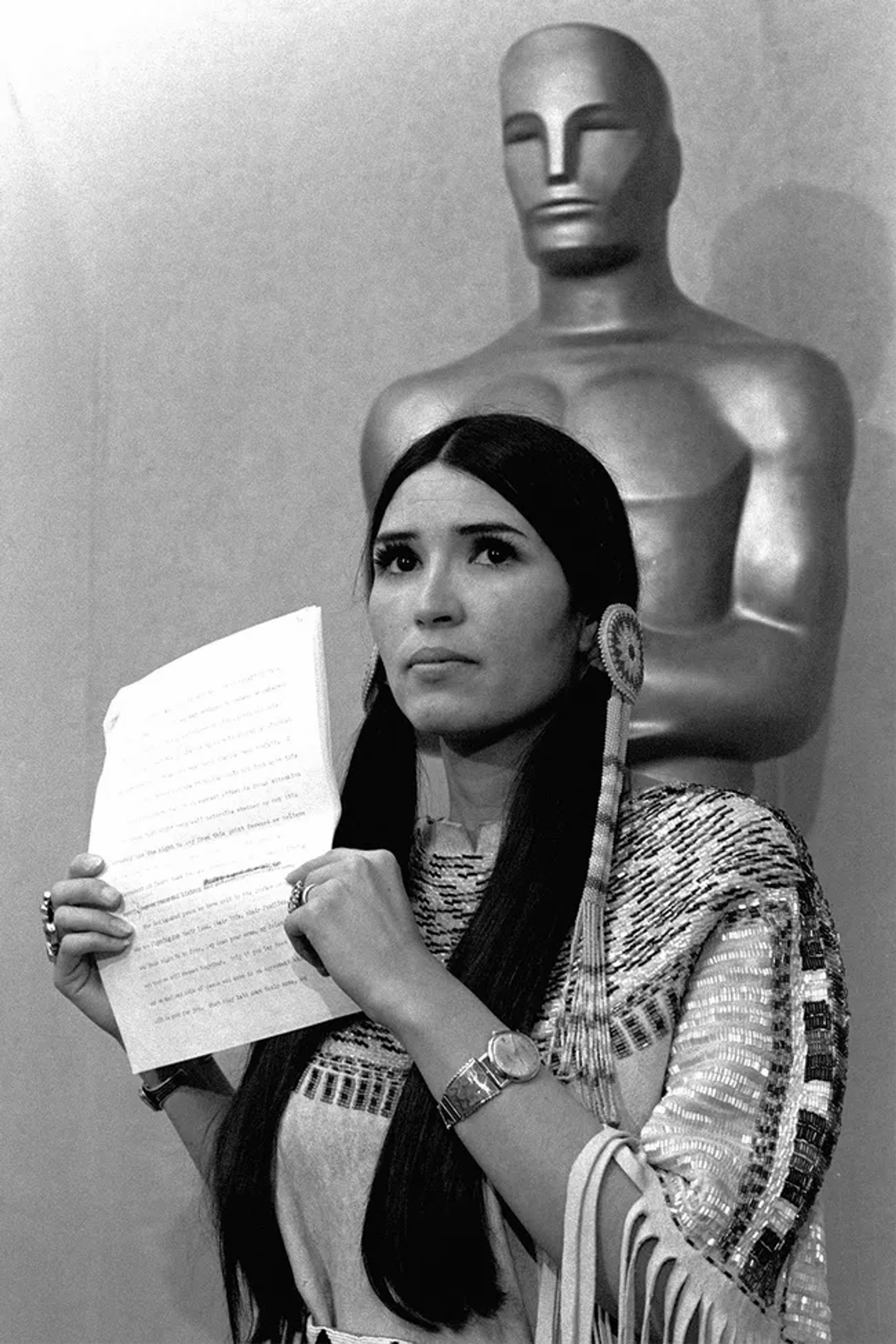 «Марлон Брандо доверил мне честь представлять его на этой церемонии и сказать вам от его имени, что он, к сожалению, не может принять эту высокую награду. Причиной этому послужило существующее в настоящее время в киноиндустрии отношение к американским индейцам», — заявила в 1973 году Сашин Легкое Перо. Само собой, присутствующим в зале гостям все это не понравилось: девушку освистали, а потом перестали давать роли и вытеснили из индустрии. И да, так и не принесли извинений. Зато теперь, во времена новой этики, Киноакадемия вспомнила об инциденте и решила исправиться.