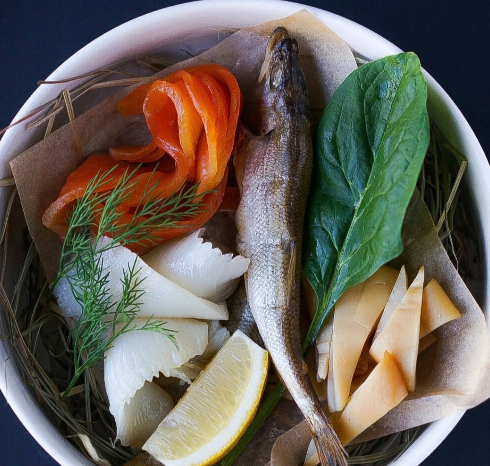«Тунгуска» — это новая сибирская кухня во всей красе и многообразии. В меню преобладают переосмысленные традиционные рецепты, причем не только русские, но и азиатские — все-таки ближайшие соседи. При этом бренд-шеф Николай Бобров и его команда не боятся ни новых технологий, ни современных трендов. Чтобы как следует познакомиться с меню, берите дегустационный сет «Эволюция сибирского стола»: это путешествие во времени, рассказывающее об изменениях кулинарных традиций на территории Енисейской Сибири от собирательства и укрощения огня до советского прошлого и наших дней. На столе поочередно окажутся девять курсов, каждый из которых сопровождает элемент картины художника Александра Блосяка, специально созданной для сета. Цена справедливая: 5000 рублей. А еще команда Tunguska — организатор сибирского гастрономического фестиваля «Тайгастро», который в этом году пройдет с 1 по 19 августа по всей России. Его основная миссия — познакомить жителей страны с региональной сибирской кухней: от локальных фермерских продуктов до даров тайги — дичи, рыбы, ягод, грибов и трав.