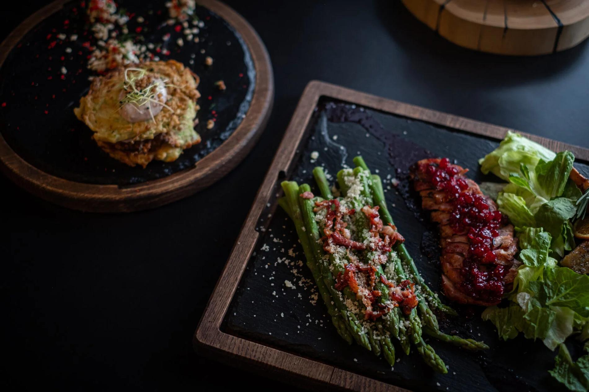Традиционные рецепты Горной Шории в авторском прочтении. Поэтому оленина идет с пюре из корнеплодов. Медвежатину сопровождают рагу из чечевицы и кедровая каша. А бобер подается с фаршированным картофелем и джемом из болгарского перца. Даже традиционные бургеры предстают в новом прочтении — с маралом или уткой.