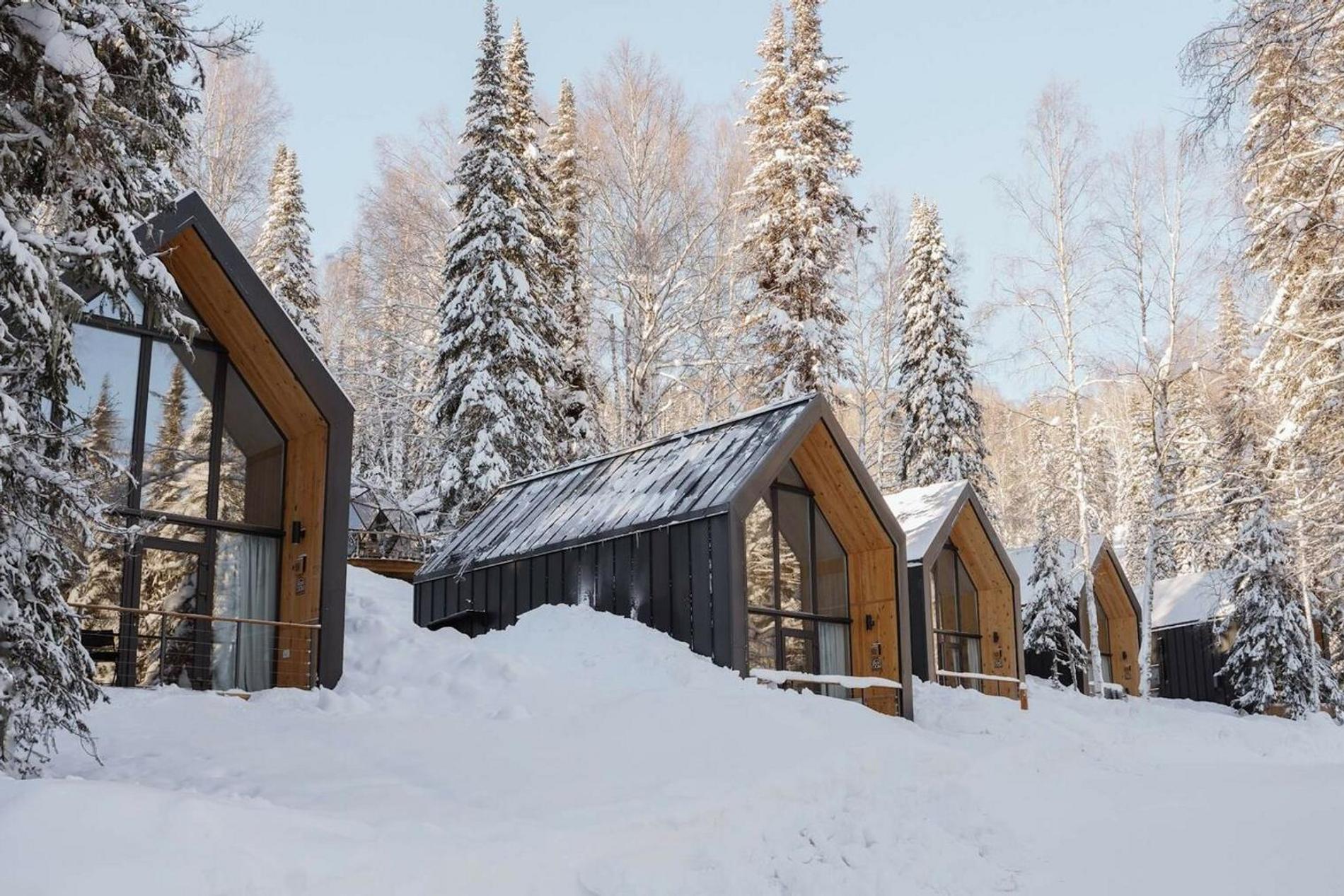 Купольные дома — не новость, но своей эстетичностью они продолжают привлекать путешественников. Стеклянные сферы особенно элегантно смотрятся зимой, когда сверкают на солнце. А вокруг горы и ничего кроме гор. Ну и снег, конечно. Много снега. От которого, впрочем, не холодно, но жарко, ибо внутри домов батареи, а снаружи можно погреться в купелях на террасе.