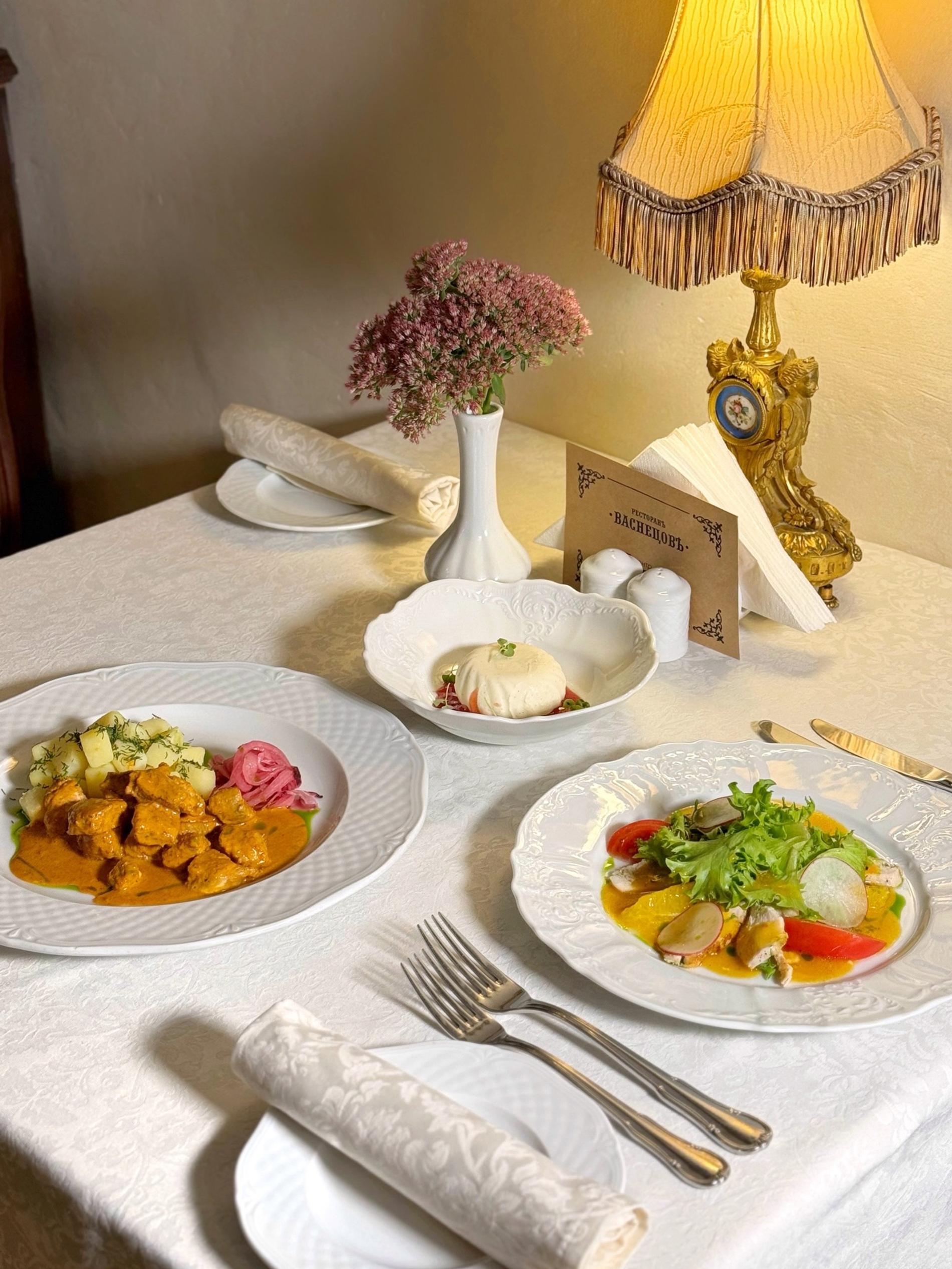 «Ресторация русской кухни» — так позиционирует себя заведение, в котором воссозданы интерьеры светских гостиных позапрошлого века. Как бы то ни было, блюда исполнены на современный манер. Тартар из говядины и севиче из гребешка. Ризотто с белыми грибами и томленый барашек с джонджоли и пюре из нута. На десерт — «черный хлеб с огурцом», то есть брауни с пломбиром из личи.