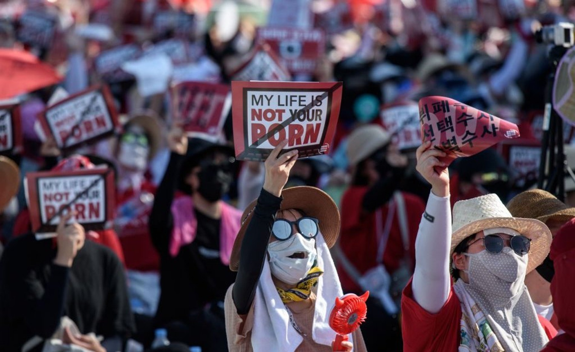 Долгое время правительство Южной Кореи мало реагировало на проблему шпионского порно, количество жертв которого постоянно росло. В отчете Human Rights Watch говорится, что многие девушки, обнаружившие себя на видео, с трудом справлялись с травмой. Кто-то стыдился и боялся обращаться в полицию, другие отказывались выходить из дома и думали о самоубийстве. Терпение кореянок лопнуло в 2018 году, когда в стране набрало обороты движение #MeToo — на волне борьбы с сексуальными домогательствами женщины взялись за создателей вуайеристких роликов.