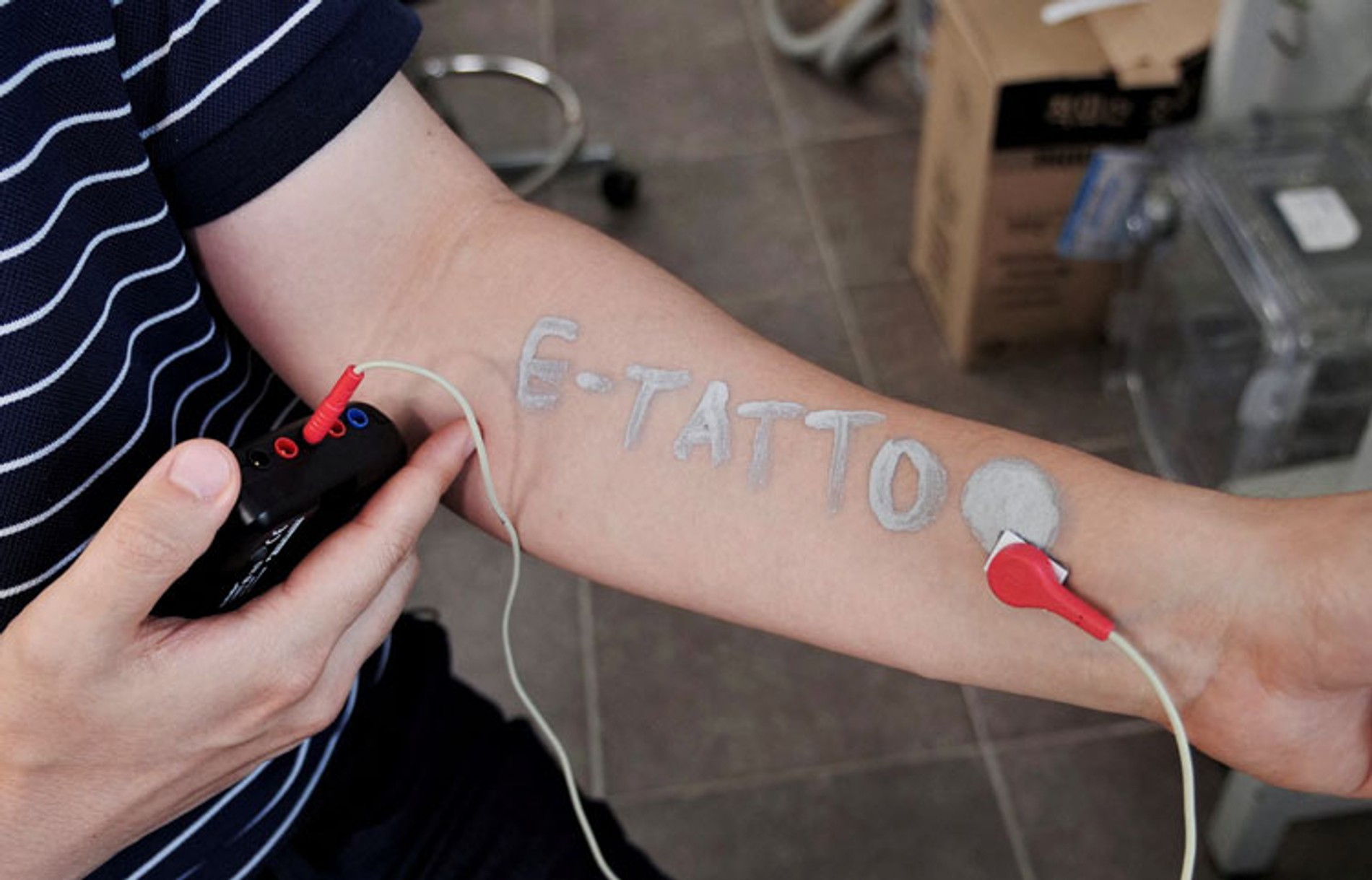 Наконец-то у тату нашлось практическое применение. Правда, речь о специальных рисунках на коже, которые придумали делать в Южной Корее в передовом институте науки и технологий (KAIST) в городе Тэджон. Их наносят чернилами из смеси жидкого металла галлия и углеродных нанотрубок, которые могут передавать данные о здоровье пациента прямо на монитор.