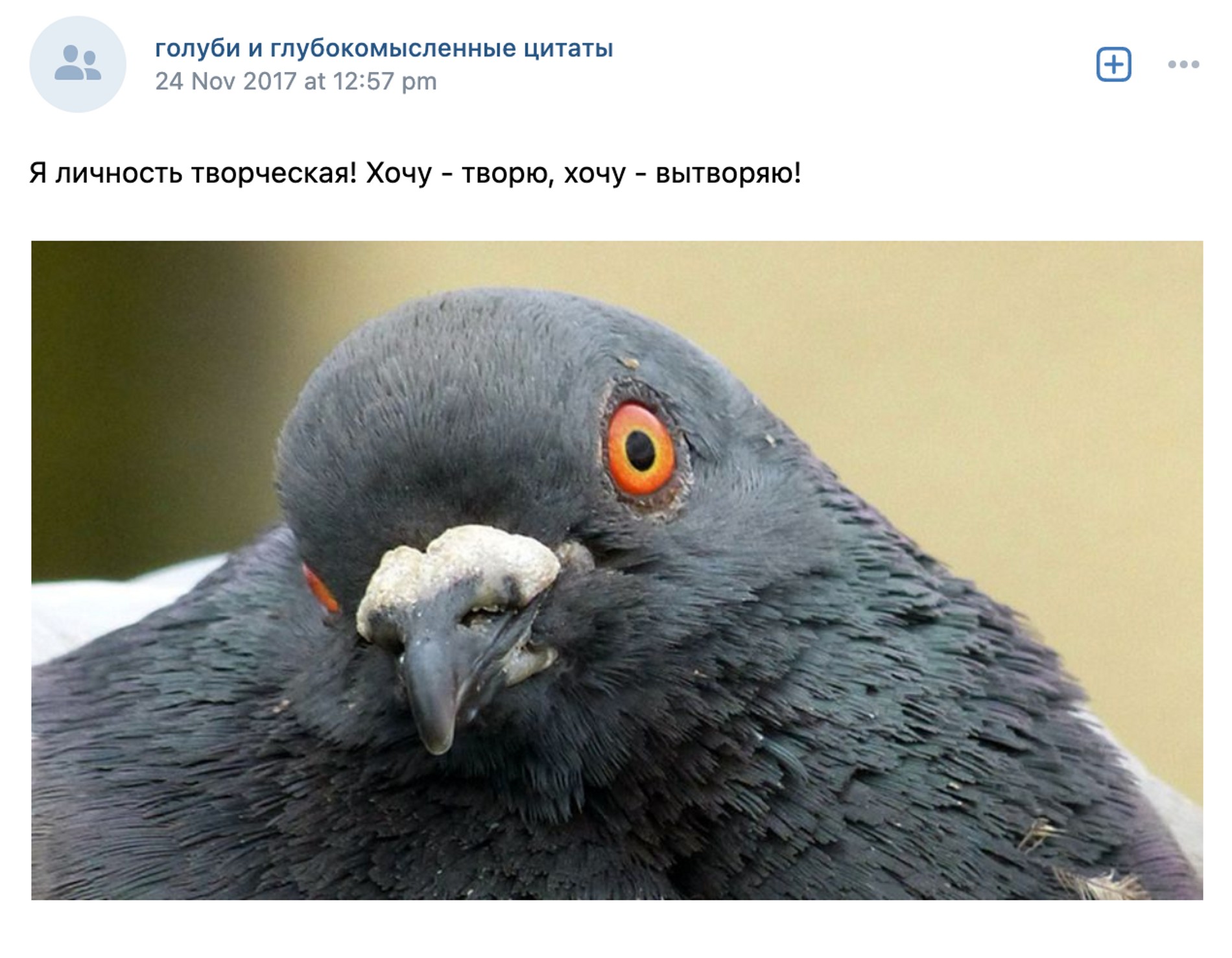 Но время шло, традицию писательства трюизмов во ВКонтакте настигли жернова постмодернизма. «Дуров, верни стену!» — кривилось в судорогах онлайн-сообщество. Но прогресс был неумолим: грустные статусы повторили судьбу большой литературы, мир разъела зубоскальская ирония. Народное творчество вошло в измерение пастиша: цитаты стали коверкать, а их авторство — приписывать самозванцам.