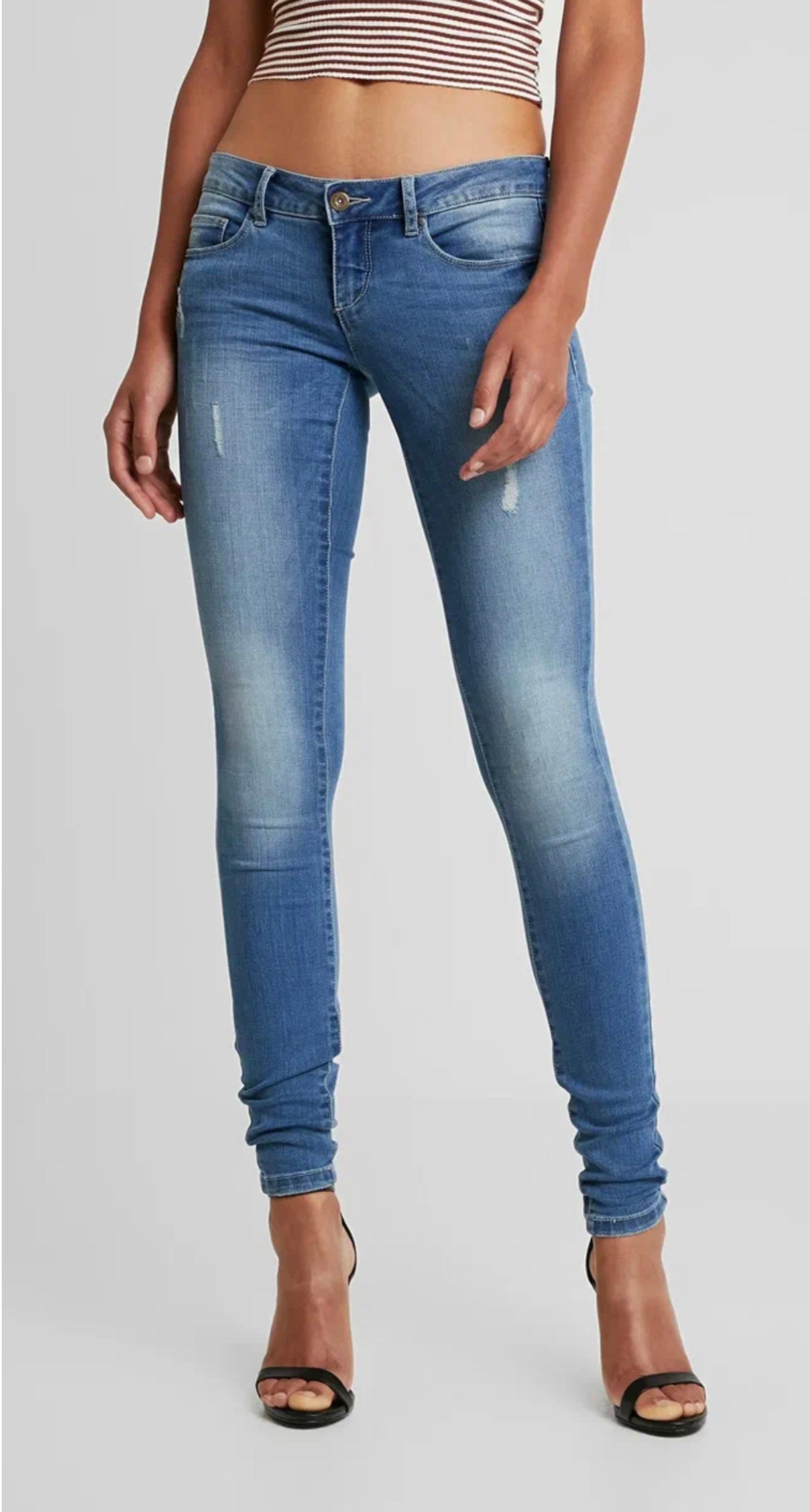 Сами по себе джинсы скинни выглядят неплохо, но на высокой посадке и без «гармошки». Подбирать их следует по росту, чтобы они заканчивались выше косточки на щиколотке. Низкая посадка нарушает пропорции тела, увеличивает таз и вообще не слишком практична (нагнетесь и — вуаля! — копилка открыта, несите мелочь). Да и поясницу продуть на раз-два. Эффект потертости на таких джинсах визуально увеличивает объем ног. «Гармошка» внизу создает впечатление, что вы надели джинсы старшей сестры (и мама не успела их подшить).