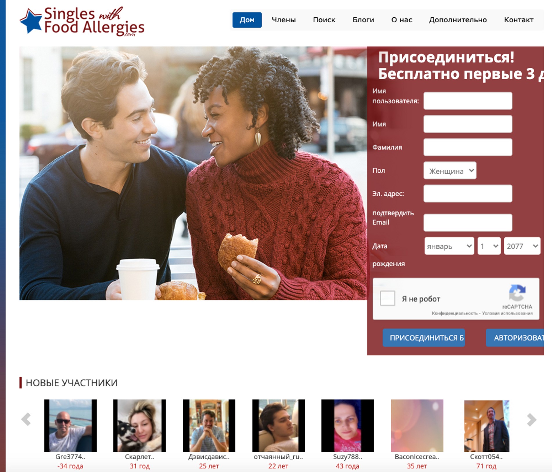 Для аллергиков. Мечтаете о безлактозном завтраке в постель? Вам на сайт знакомств для людей с пищевой аллергией. Создательница — дама в разводе, которая решила найти свою половинку и параллельно помочь в этом другим. Первые три дня участия бесплатно, дальше ежемесячная подписка ценой в 14 долларов (800 рублей).