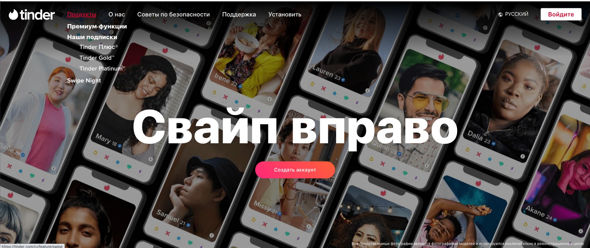 Tinder — зарубежный дейтинг-сервис, который успел покорить сердца российских пользователей. Согласно скромной статистике от создателей, этот купидон свел более 55 миллиардов пар. Работает в 190 странах и строго верифицирует профили, а для платных пользователей есть и такая роскошь, как видеочат. Правда, это не гарантия того, что вам не повстречается Саймон Леваев.