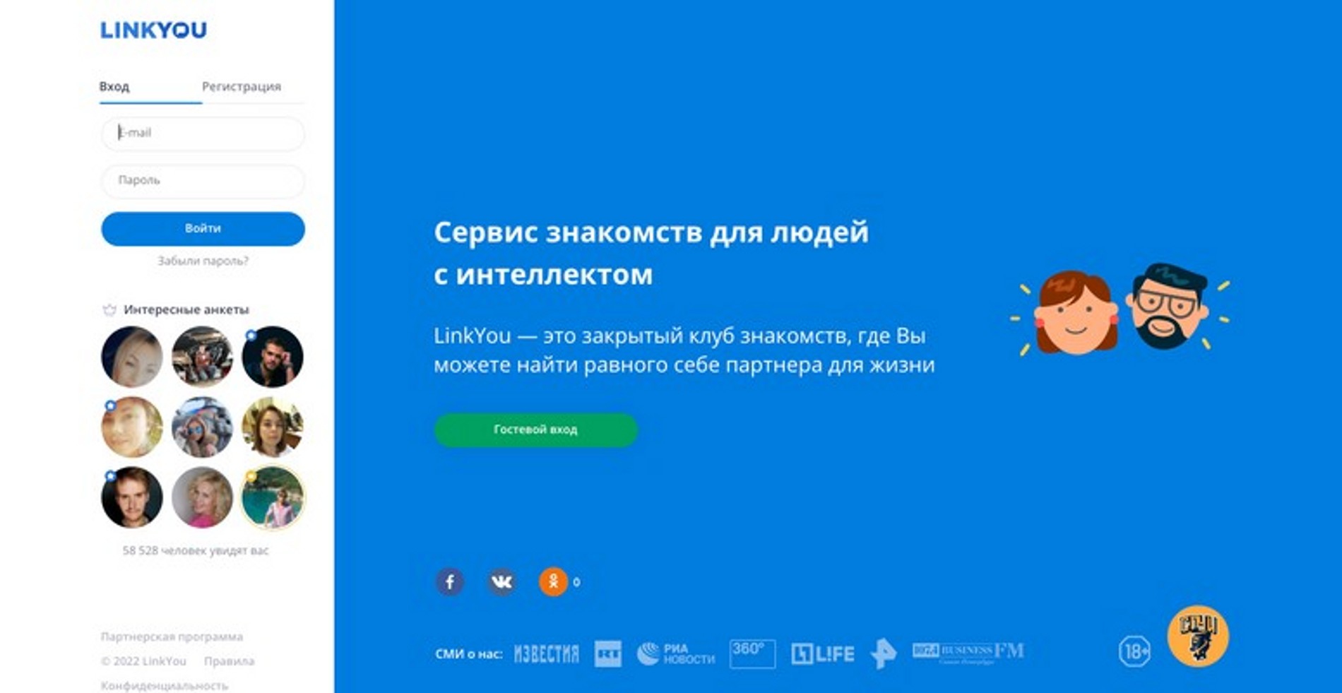 LinkYou позиционирует себя как закрытое сообщество для знакомств, без фейковых миллионеров и исключительно для серьезных отношений. Отличительная черта — возможность поиска второй половинки по профессии, национальности и вероисповеданию.