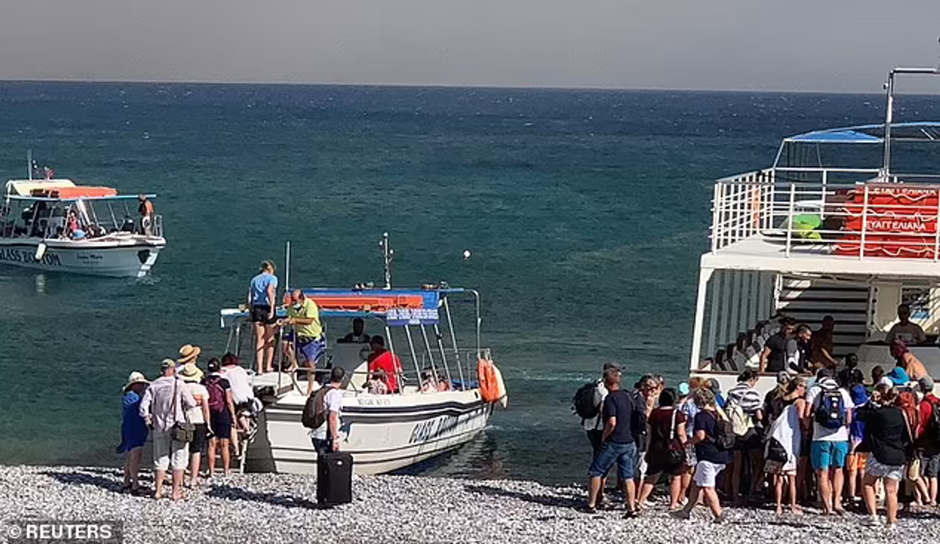Туристы спасаются с охваченного лесными пожарами греческого острова Родос: страшные кадры