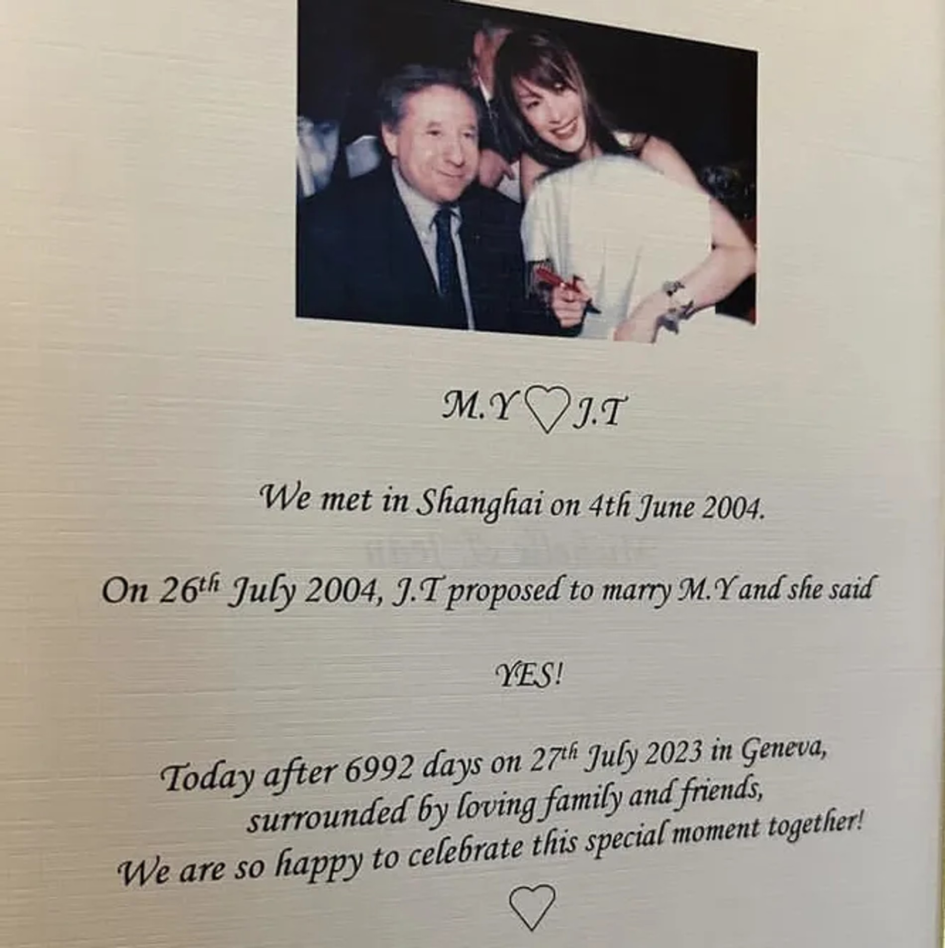 Спустя 19 лет после предложения руки и сердца оскароносная актриса Мишель Йо вышла замуж за экс-главу Ferarri Жана Тодта. «После 6992 дней помолвки в Женеве в окружении любящей семьи и друзей они наконец-то поженились. Мы так рады отметить этот особенный момент вместе», — говорится на праздничной открытке, которую опубликовал в своем инстаграме* один из гостей — бразильский автогонщик Фелипе Масса.