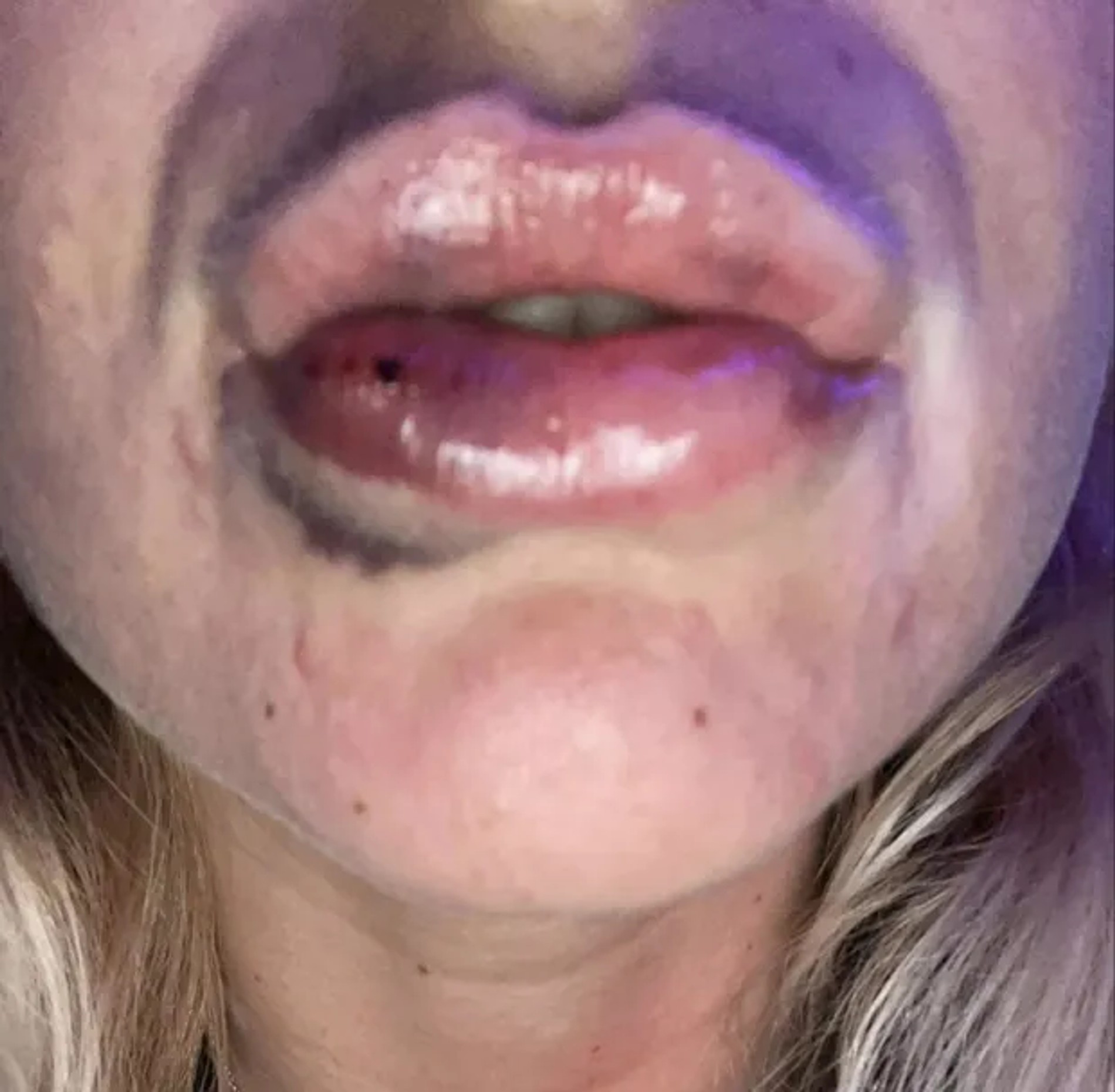 Мастера Натали Овертон нашла в социальных сетях, выбрала ее из-за сравнительно низкой стоимости используемого препарата — 75 фунтов стерлингов за один миллилитр. «Сперва она уколола первую губу, все прошло успешно и быстро. Потом сделала половину нижней губы, перешла ко второй половине, и я почуствовала, как губа коснулась зубов. Она начала опухать внутрь», — цитирует пострадавшую The Sun. Позже на лице Натали появились гематомы, ей пришлось ходить на работу в маске.
