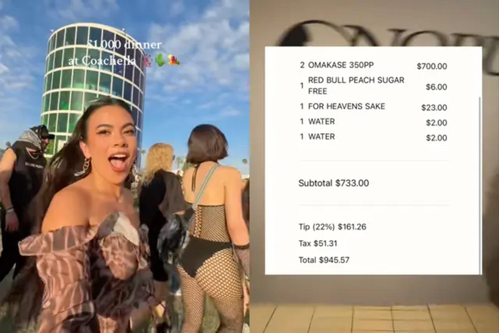 Звезда TikTok потратила на ужин тысячу долларов на Coachella — блогера жёстко раскритиковали