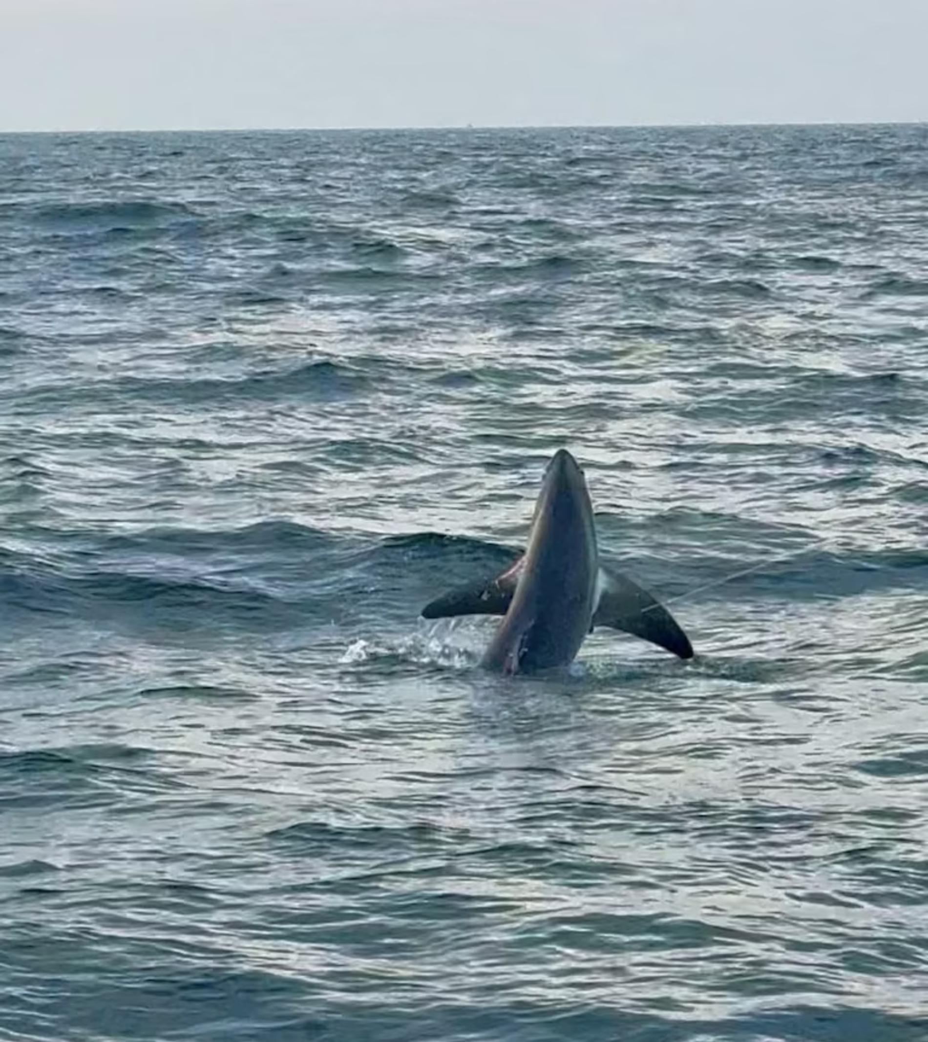 Потребовалось около 20 минут, прежде чем рыба выпрыгнула из воды, и стало ясно, что на крючке — акула. Примерно через час команда рыболовов смогла достать рыбу, чтобы отцепить её и отпустить на волю.